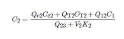 式中:C2為第2個河段斷面污染物濃度,mg/L;C1為第1個河段斷面污染物濃度,mg/L;Ce2為第2個河段排污口污染物排放濃度,mg/L;Qe2為第2個河段排污口排放水量,m3/s;QT2為第2個河段支流入流水量,m3/s;Q12為第1個河段出流水量,m3/s;Q23為第2個河段出流水量,m3/s;V2為第2個河段的體積,m3。